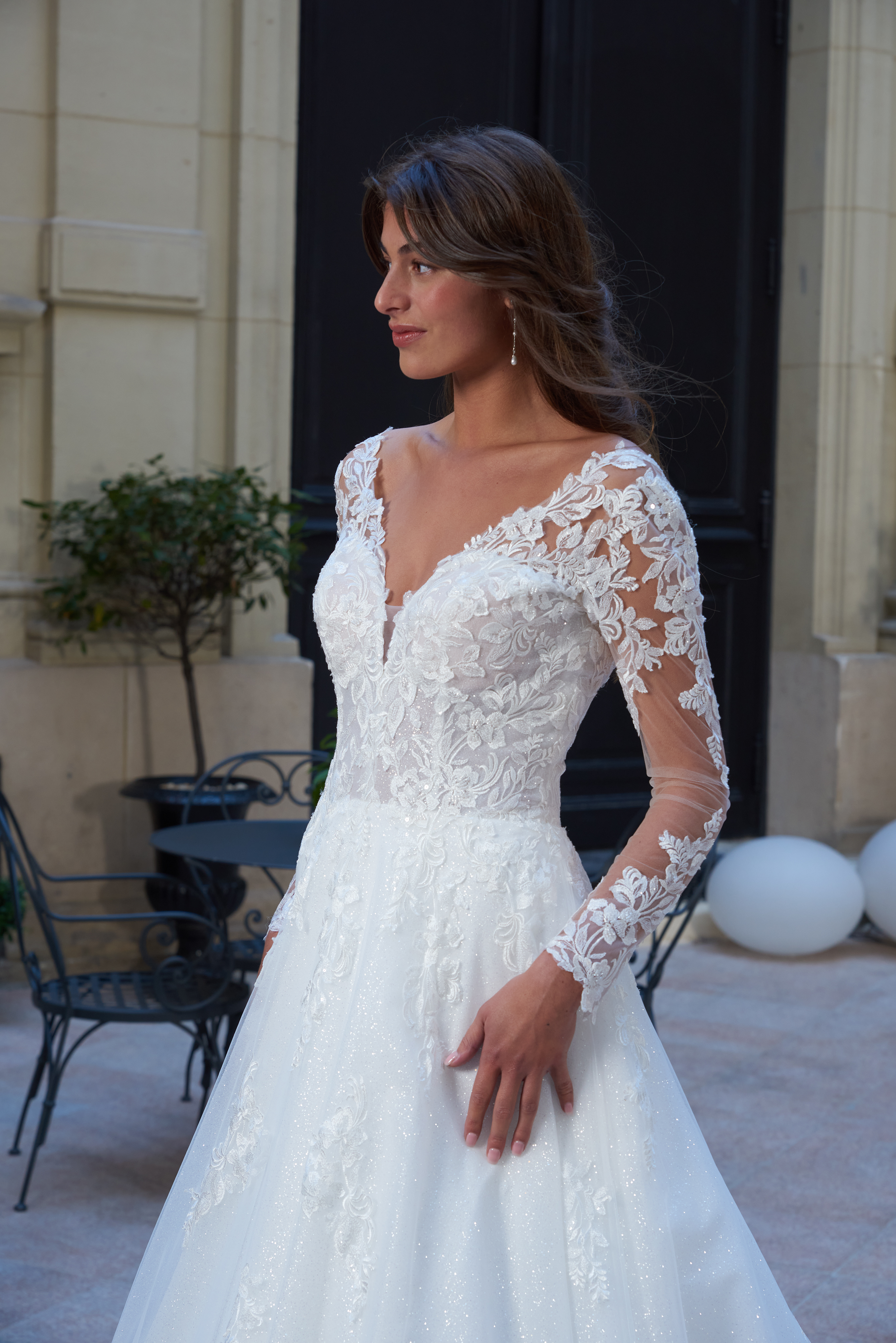 Robe de mariée en tulle et dentelle.